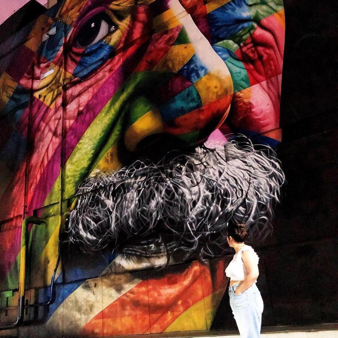 Kobra is a Brazilian muralist born in SΓ£o Paulo, who has become one of the most famous and important street artists of our time. Having painted more than 3,000 murals on five continents, Kobra is the creator of the biggest mural in the world called “Ethnias”, which you can find in the city center of Rio de Janeiro. Some of his pieces that I’ve visited include “Escadaria das Bailarinas” and murals dedicated to peace seekers in the world like Gandhi, Madre Teresa, Malala, Albert Einstein and Nelson Mandela.