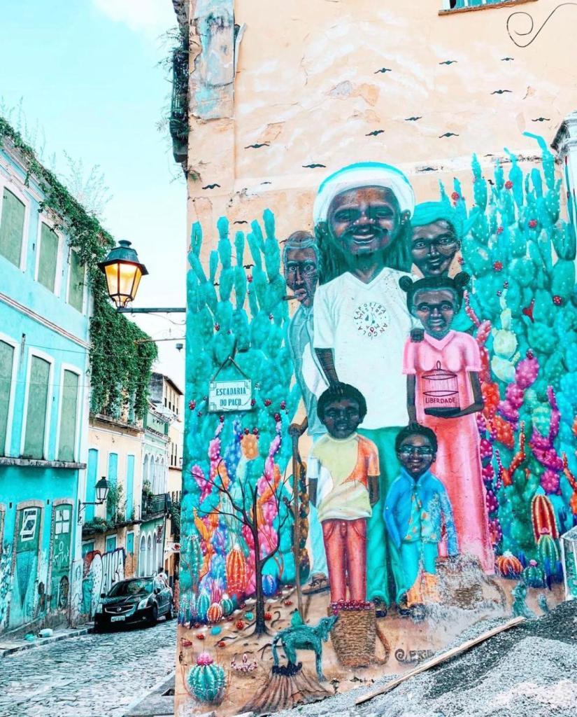 Bahia: the hottest part in Brazil, and I’m not only talking about the weather and the food!π In my last trip to Brazil my fiancΓ© surprised me with a romantic escape to Salvador, Bahia in celebration of our first year anniversary!π₯° Not only did we have the chance to visit the magical little town of Pelourinho, (where Michael Jackson filmed his “They don’t care about us” video), but we also had the chance to enjoy the beautiful street art along the way, dedicated mostly to the history of the Black population in Brazil and their struggle for peace and acceptance.